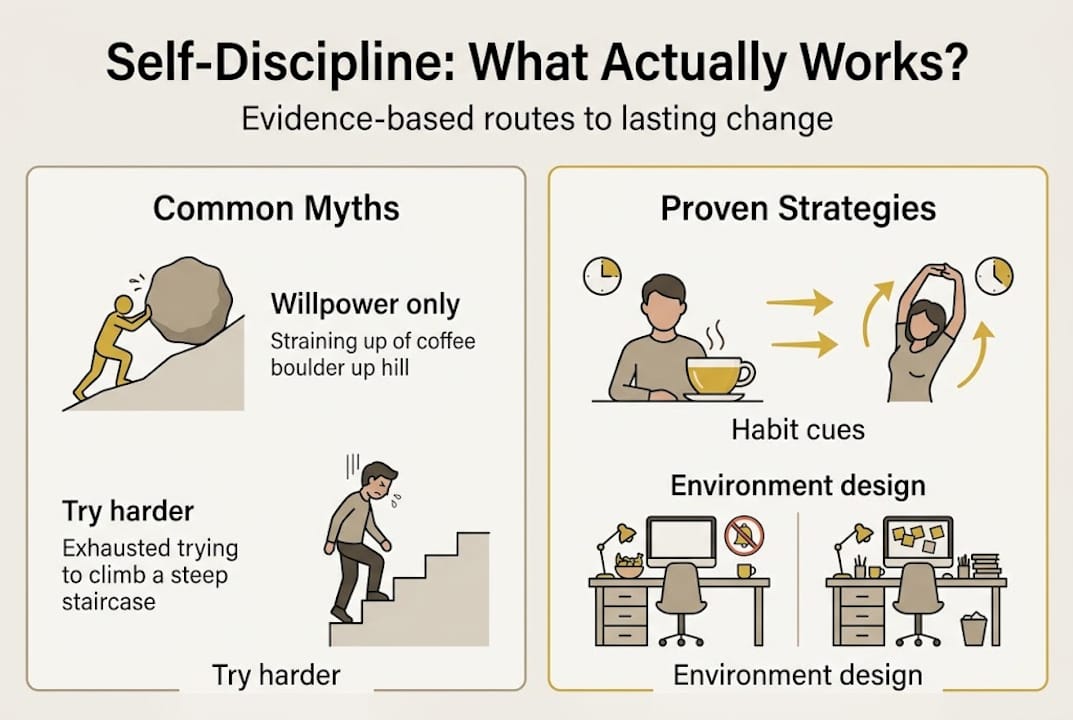 The path to lasting self-discipline success doesn't run through more grit. It runs through understanding why your current approach keeps failing, and replacing it with something that actually works with your brain instead of against it.